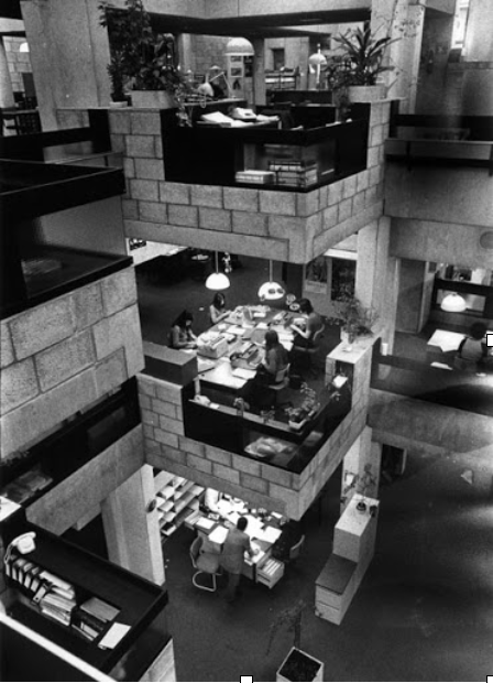 Figure 3: Johan van der Keuken, Office cubicles overhanging circulatory areas, 1972, photograph.